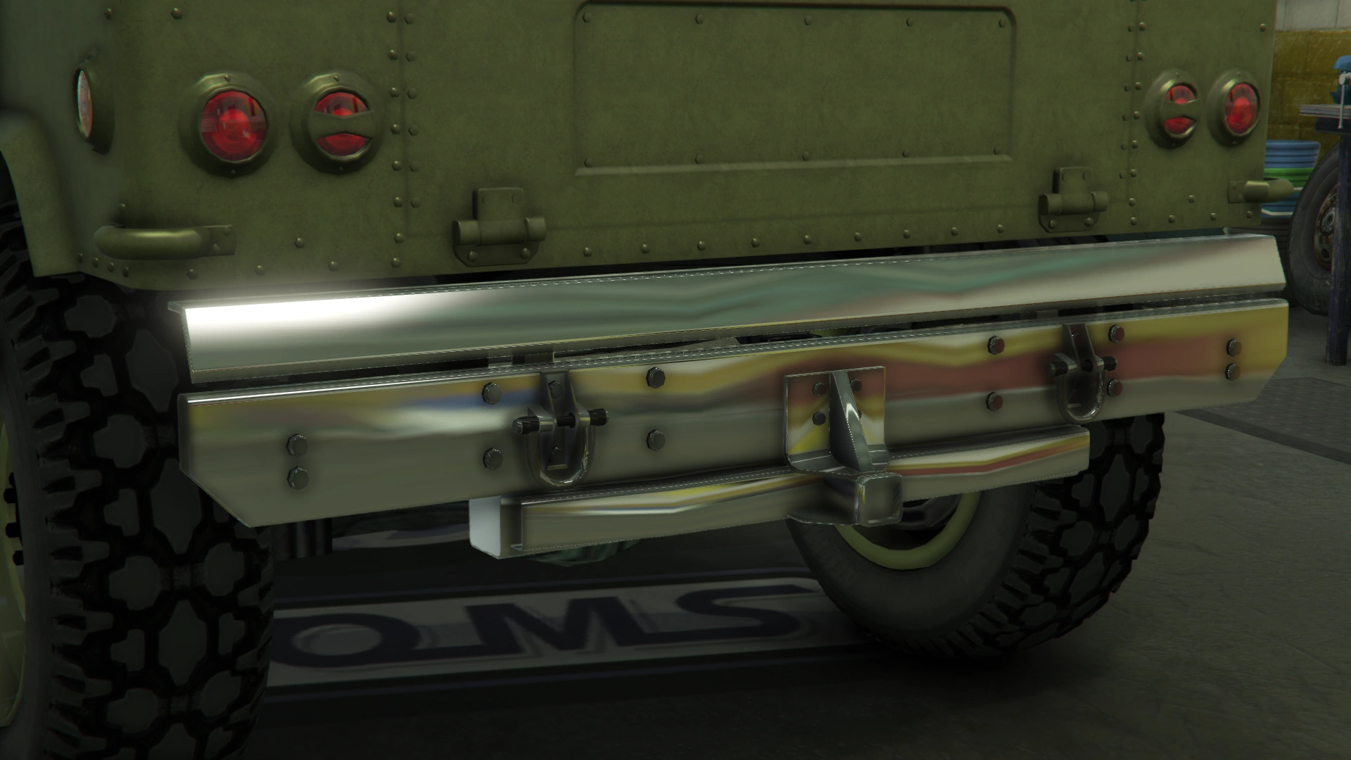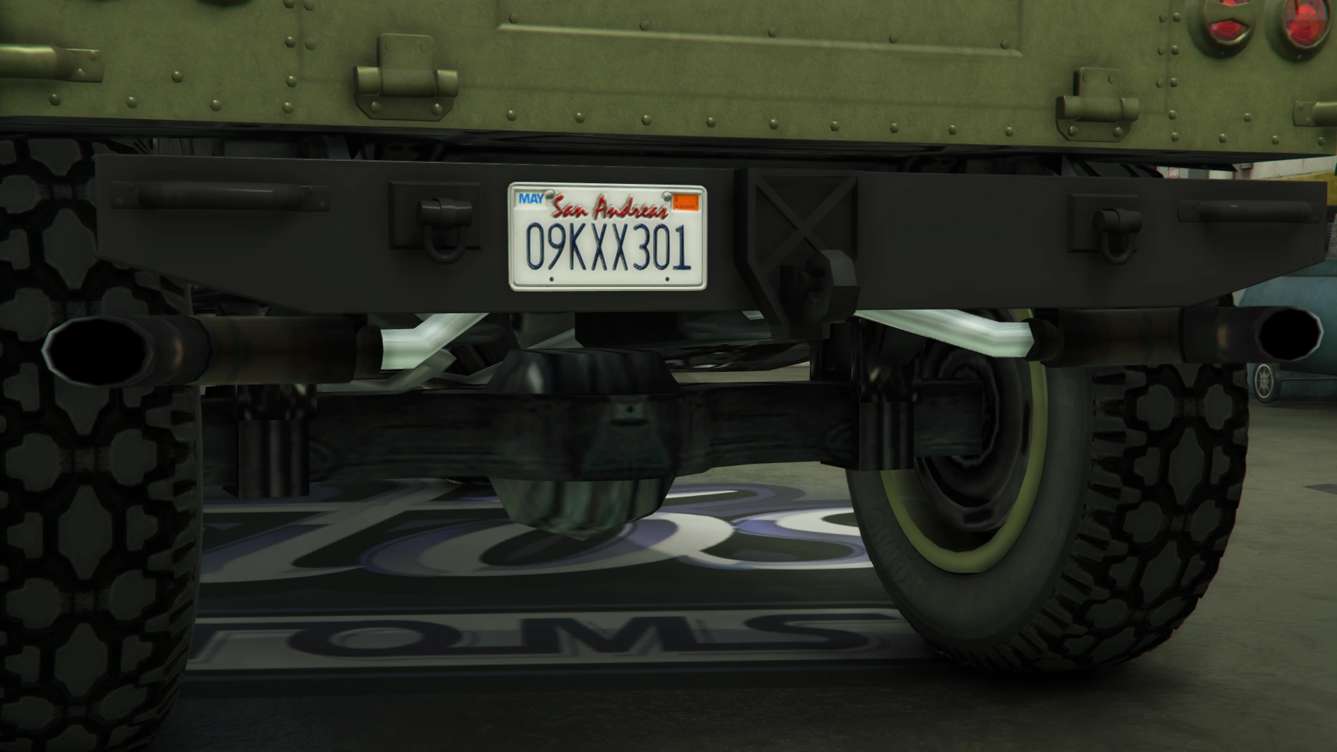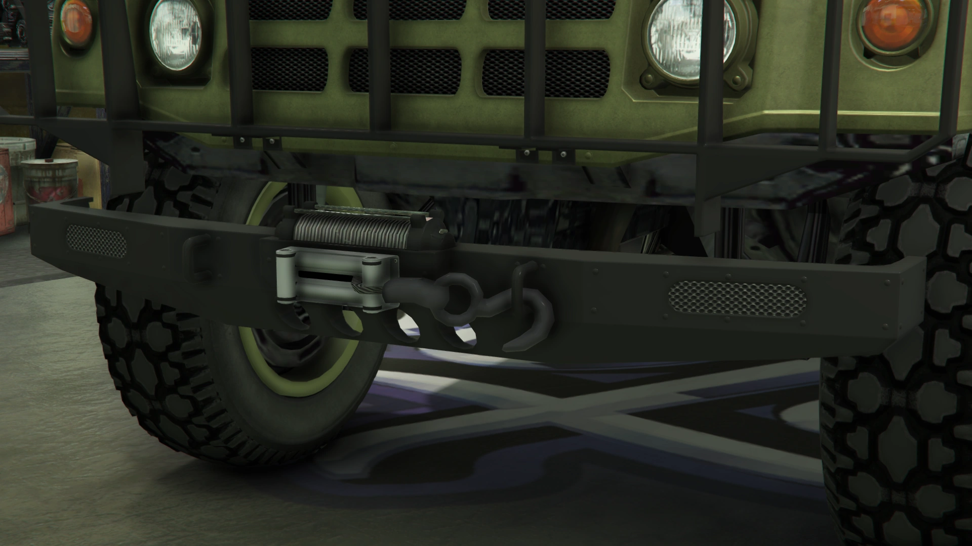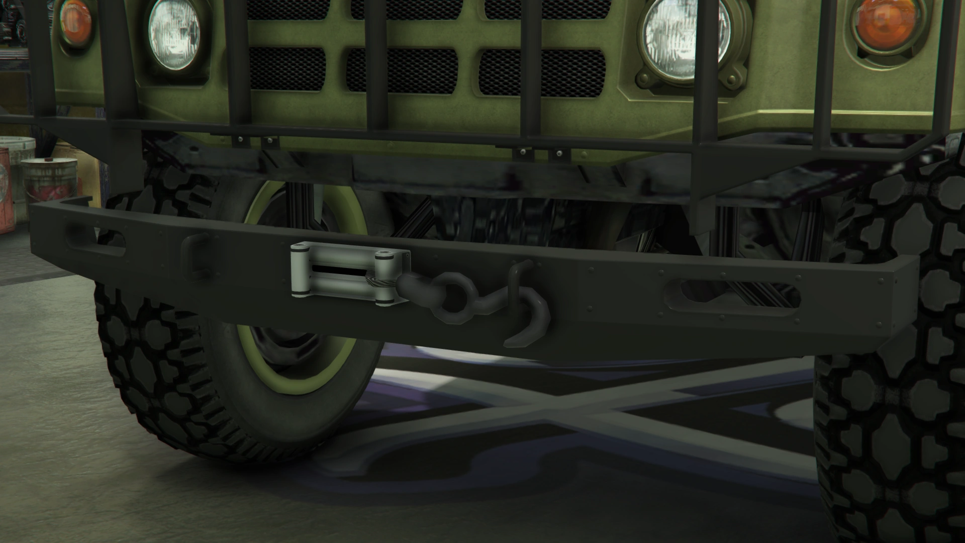 The primary color of the truck is applied on most of the bodywork, while the secondary color is applied on the doors and the roof. It uses a set of plain rims similar to the ones from the Winky, albeit with a black center and wrapped in high-profile tires. The rims can also support a dedicated color, although only naturally-generated examples may have one. Unlike the beta model, it no longer has the traditional desert camo livery, but instead uses standard camo liveries from the Gunrunning update.