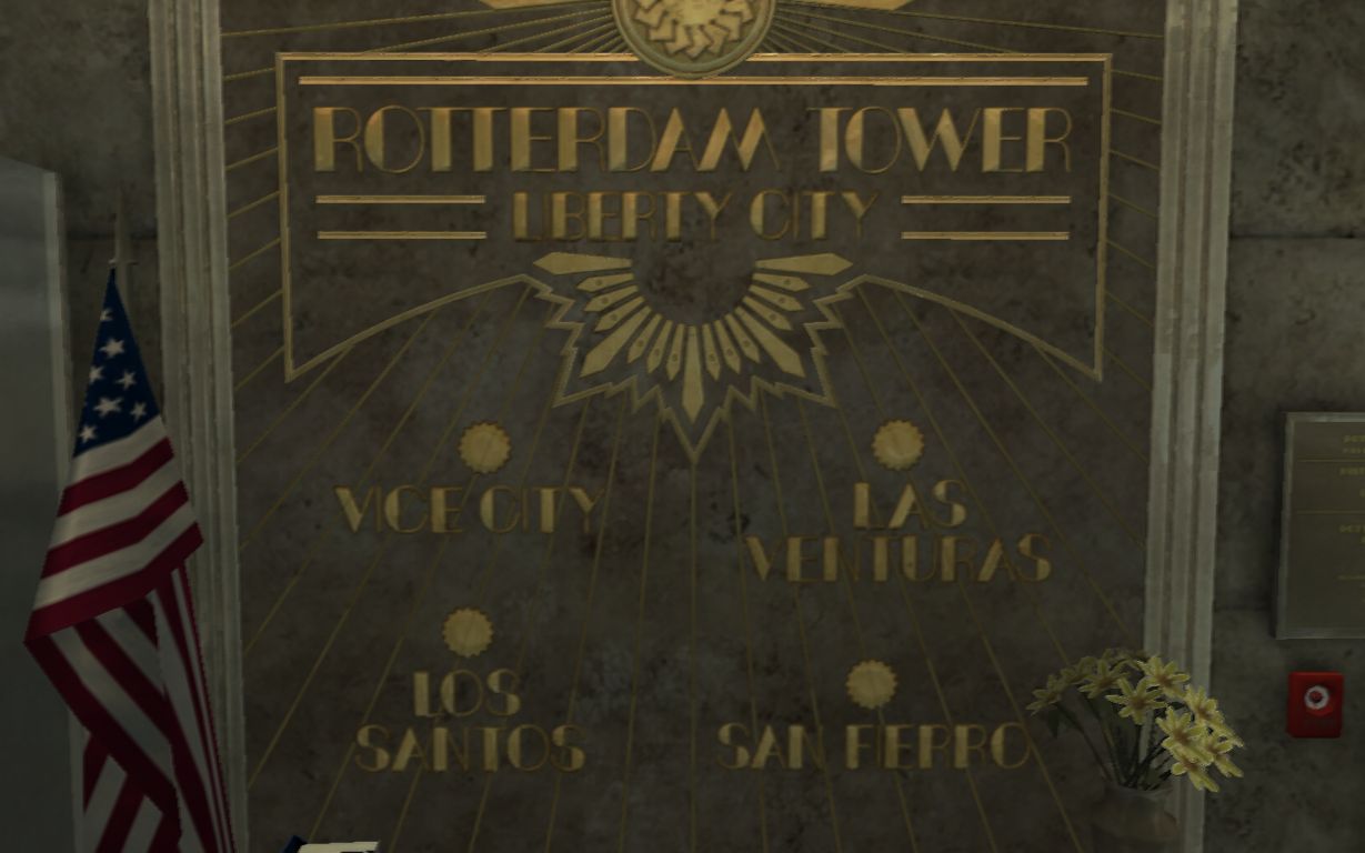 The Rotterdam Tower's ground level lobby in The Ballad of Gay Tony.