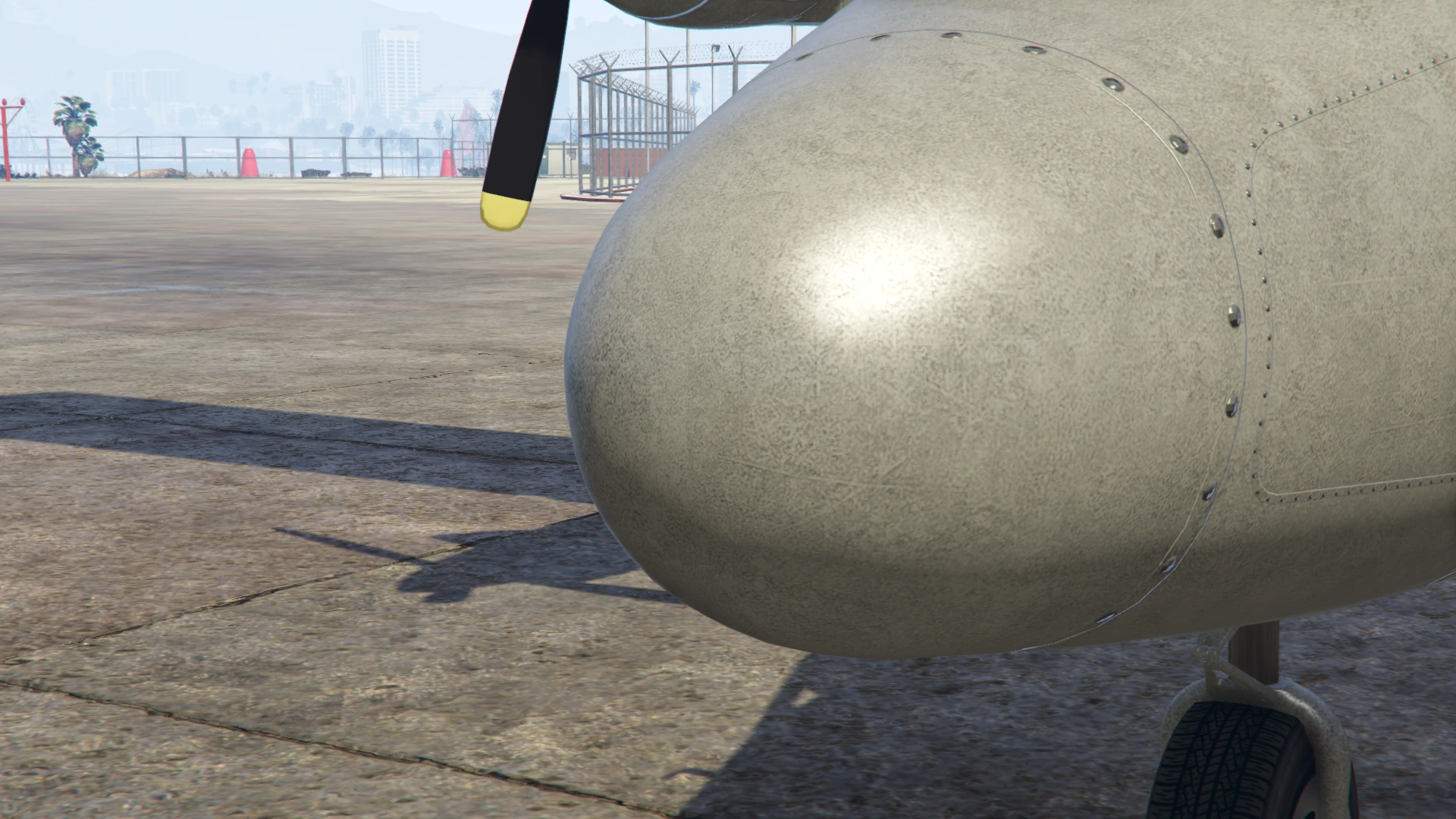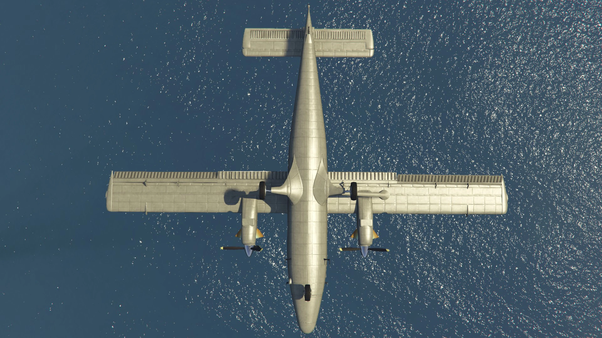 The aircraft possess similar characteristics to planes such as the Cuban 800 and the Mogul, having a relatively low top speed and decent handling, although the large wingspan can be problematic on areas with tall obstacles. However, true to its real-life inspiration, the plane has STOL (Short Takeoff and Landing) capabilities, requiring relatively short runways in comparison to similarly-sized aircraft. The tricycle undercarriage also provides good stability when taxiing around uneven areas and good ground clearance, enough to keep the propellers safe from certain obstacles. Care should be taken upon exiting from the active aircraft, as there is barely distance between the cockpit doors and the propellers.