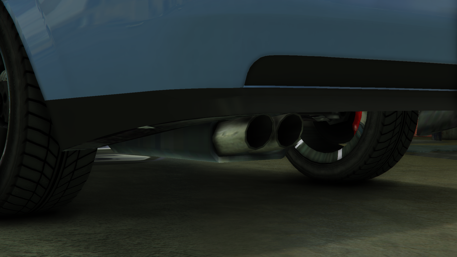 The engine is modeled as a twin-cam inline-6. With the "Roll Cage and Chassis Upgrade" modification installed, two turbochargers are fitted on one side of the engine.