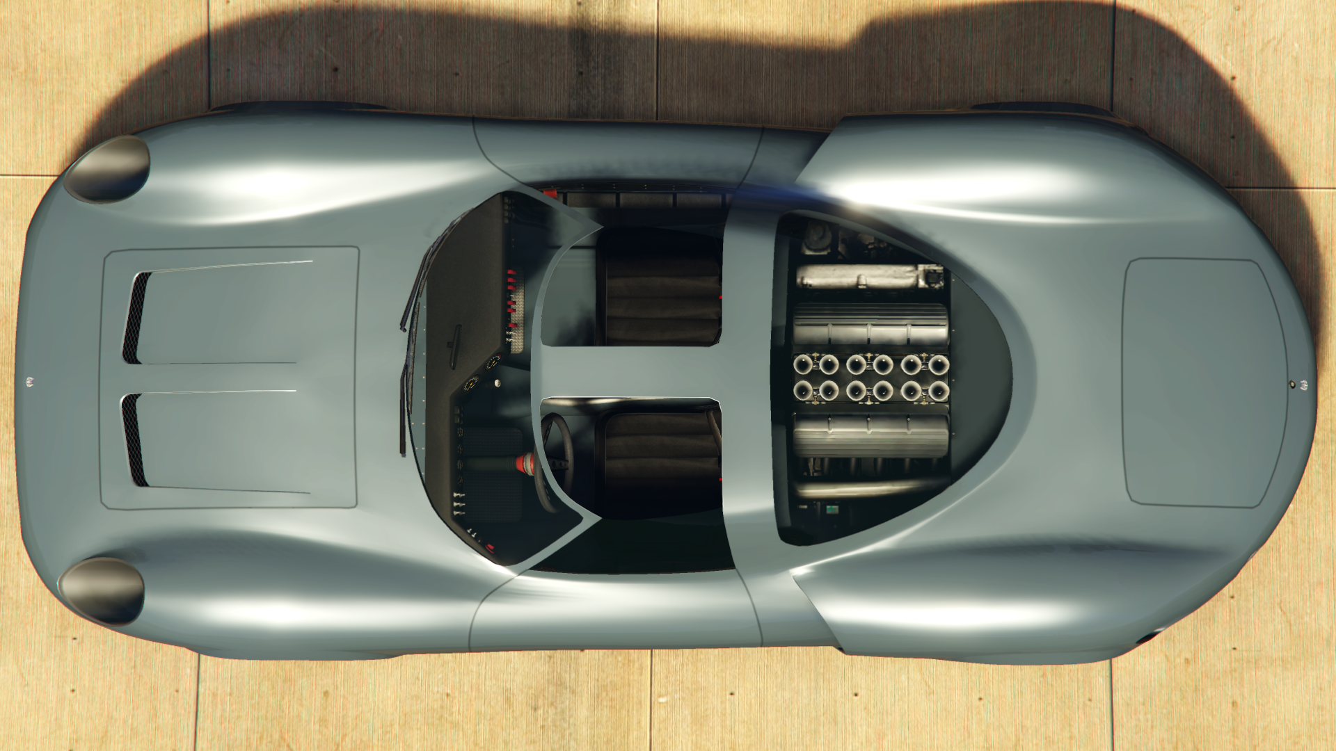 The car is powered by a single-cam V12 engine sporting double-barrel carburetors on it, coupled to a 5-speed gearbox in a rear-mid engine, rear wheel drive layout. It shares the same engine sound as the Kuruma.