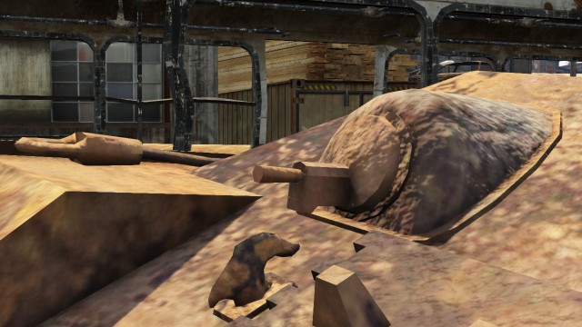 - The tank appears to simply be abandoned, as there is no evidence of shell penetration or other combat damage, and no apparent damage to the suspension. It appears partially sunken into the earth, indicating that it has not been moved for a very long time.