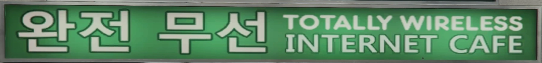 24/7 Supermarket 슈퍼마켓 (Left), Wan Ka Internet Cafe 왕카인터넷 (Right).