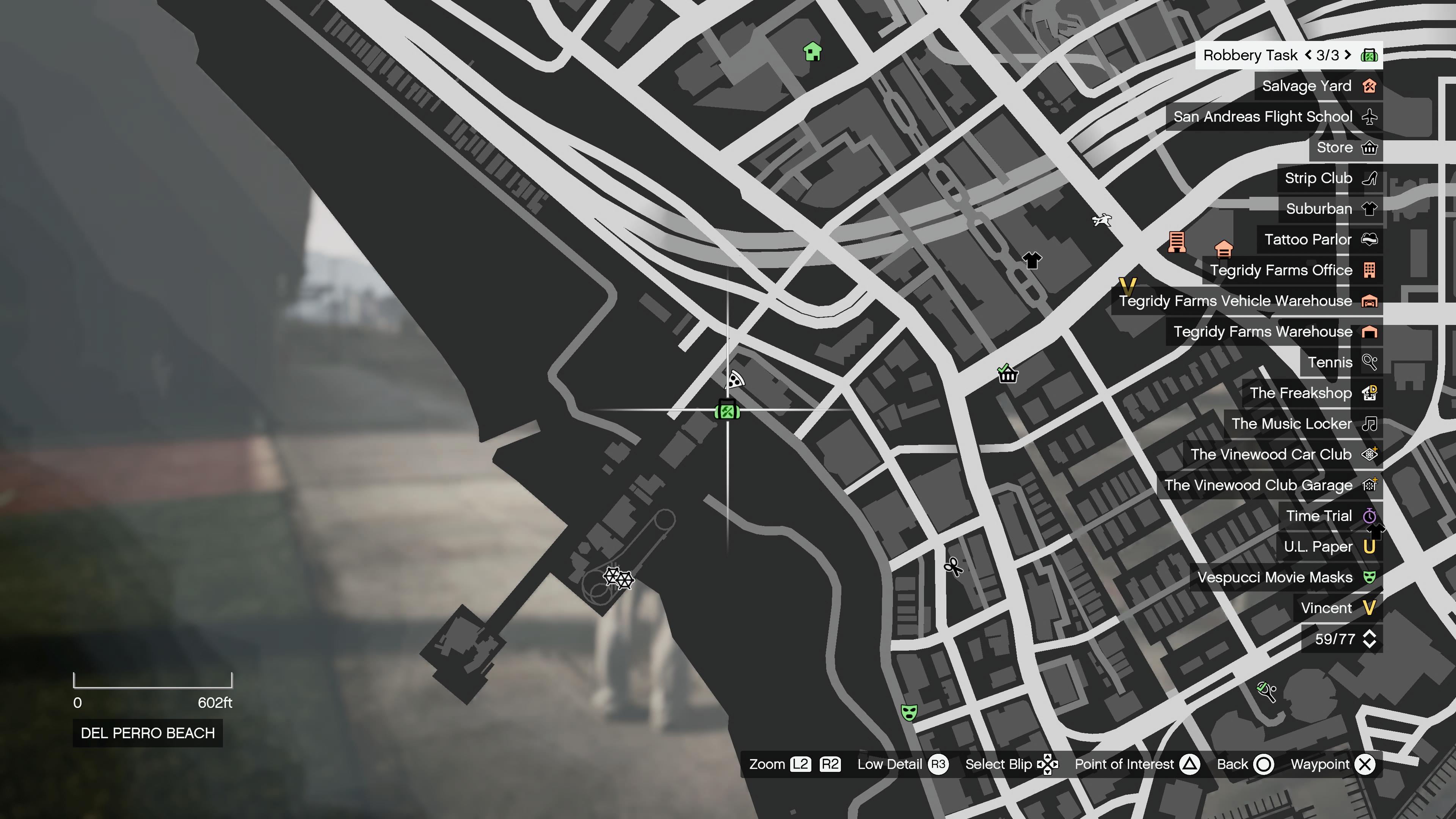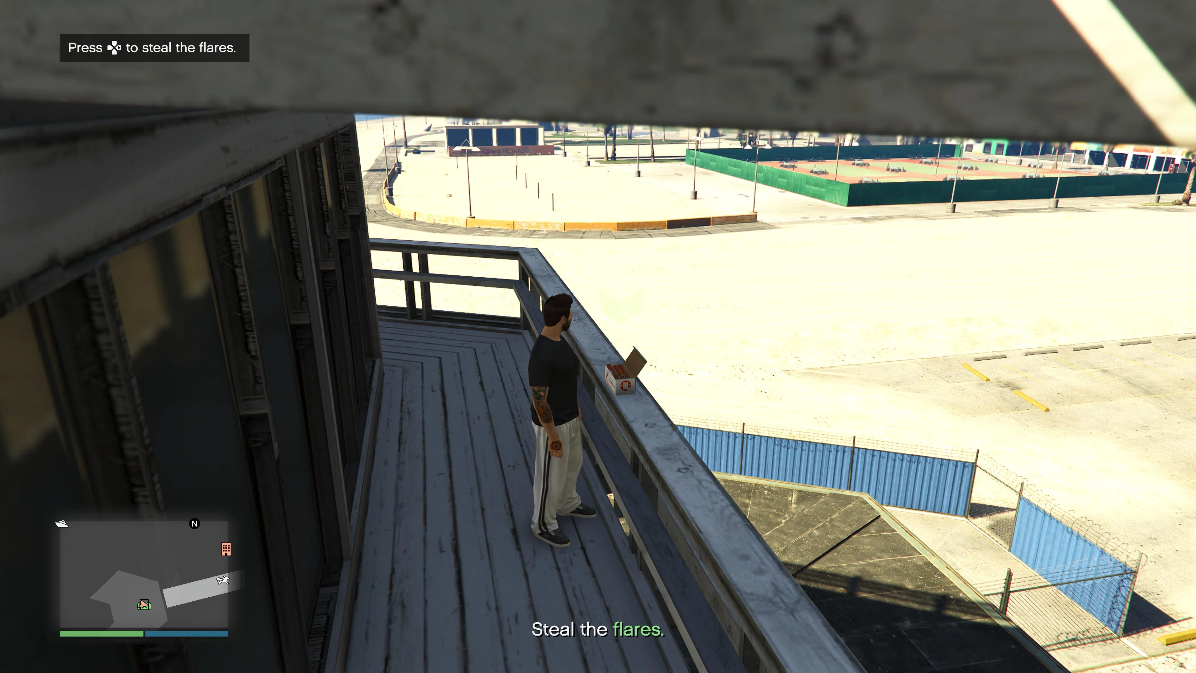 Jamal tasks the player to collect flares to be used to mark the shipping container for the pilot to pick it up during the robbery. He tells the player to collect them from the nearby location (Elysian Island/Lifeguard Stations in Vespucci Beach).