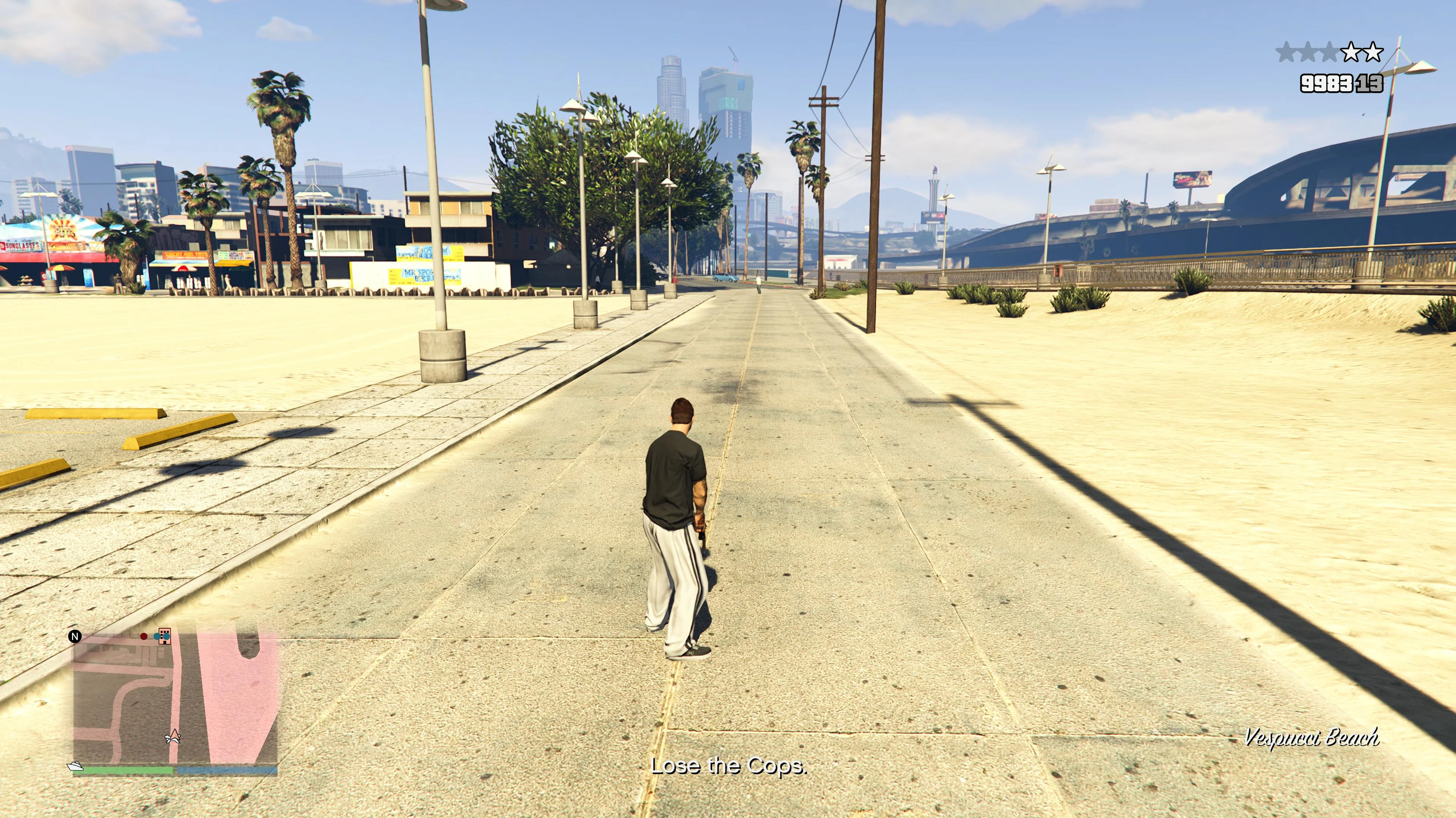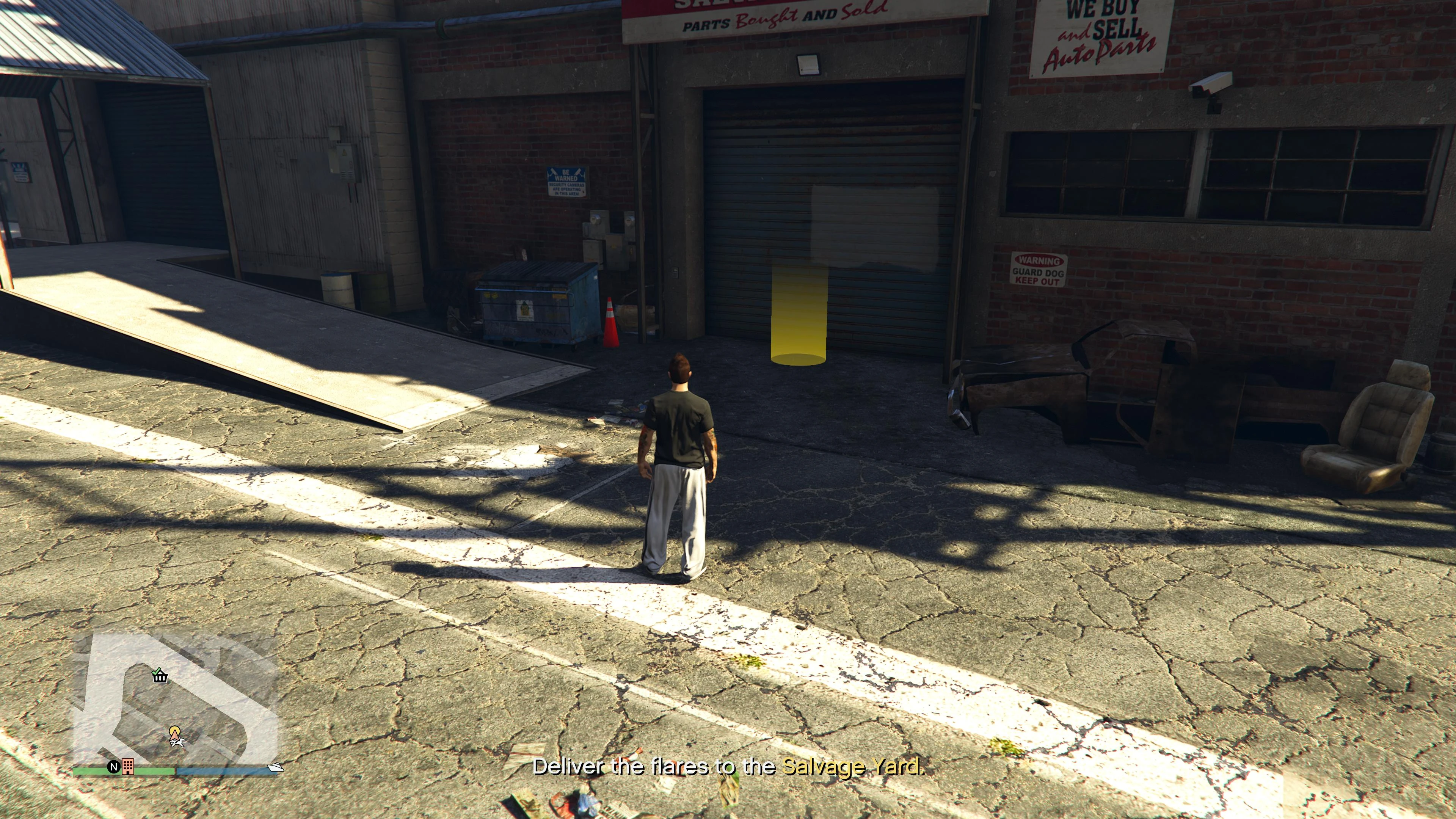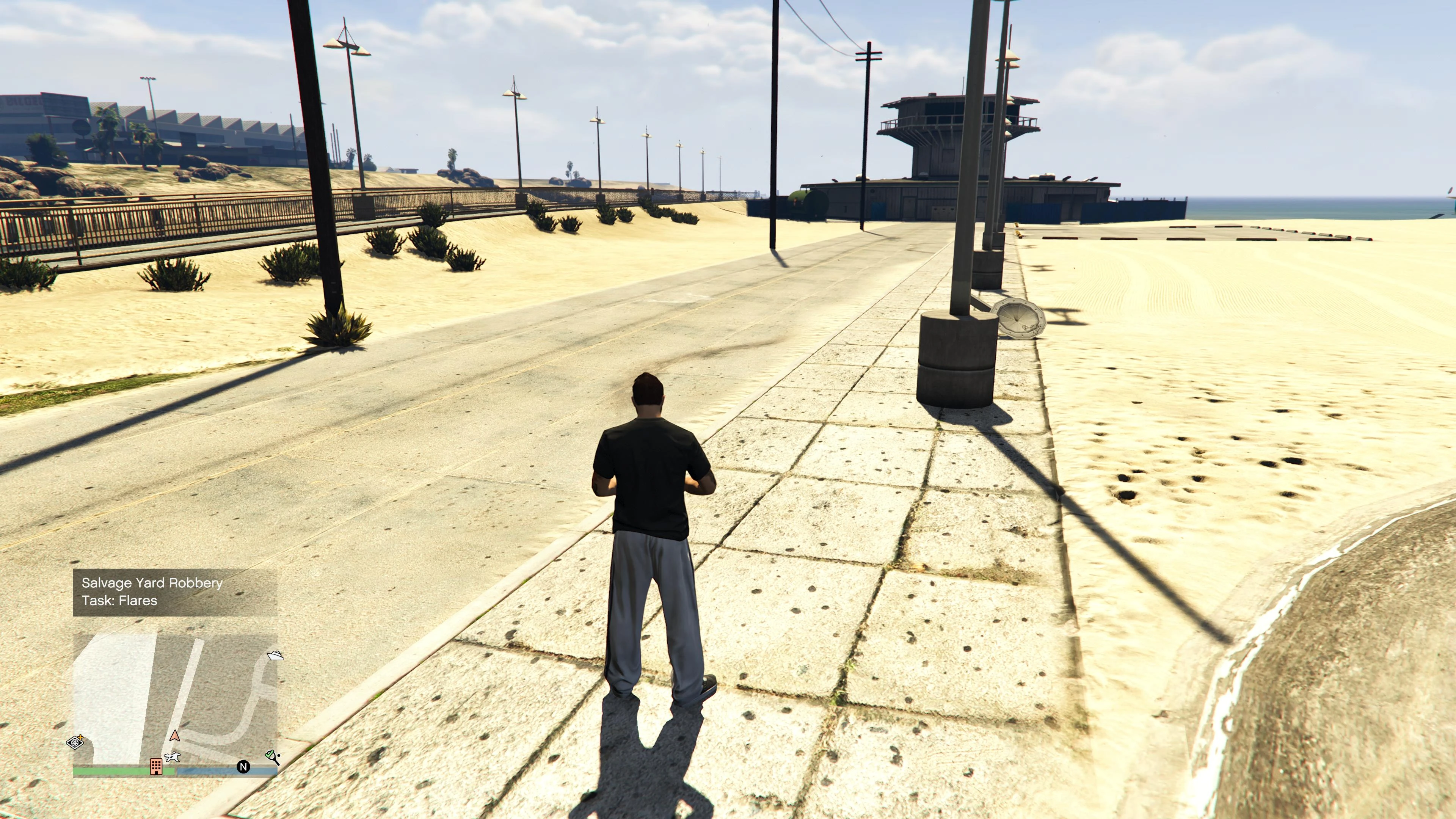 After leaving the area with the flares, the player must lose the wanted level or escape the pursuing lifeguards and deliver the flares required for the robbery to the Salvage Yard.