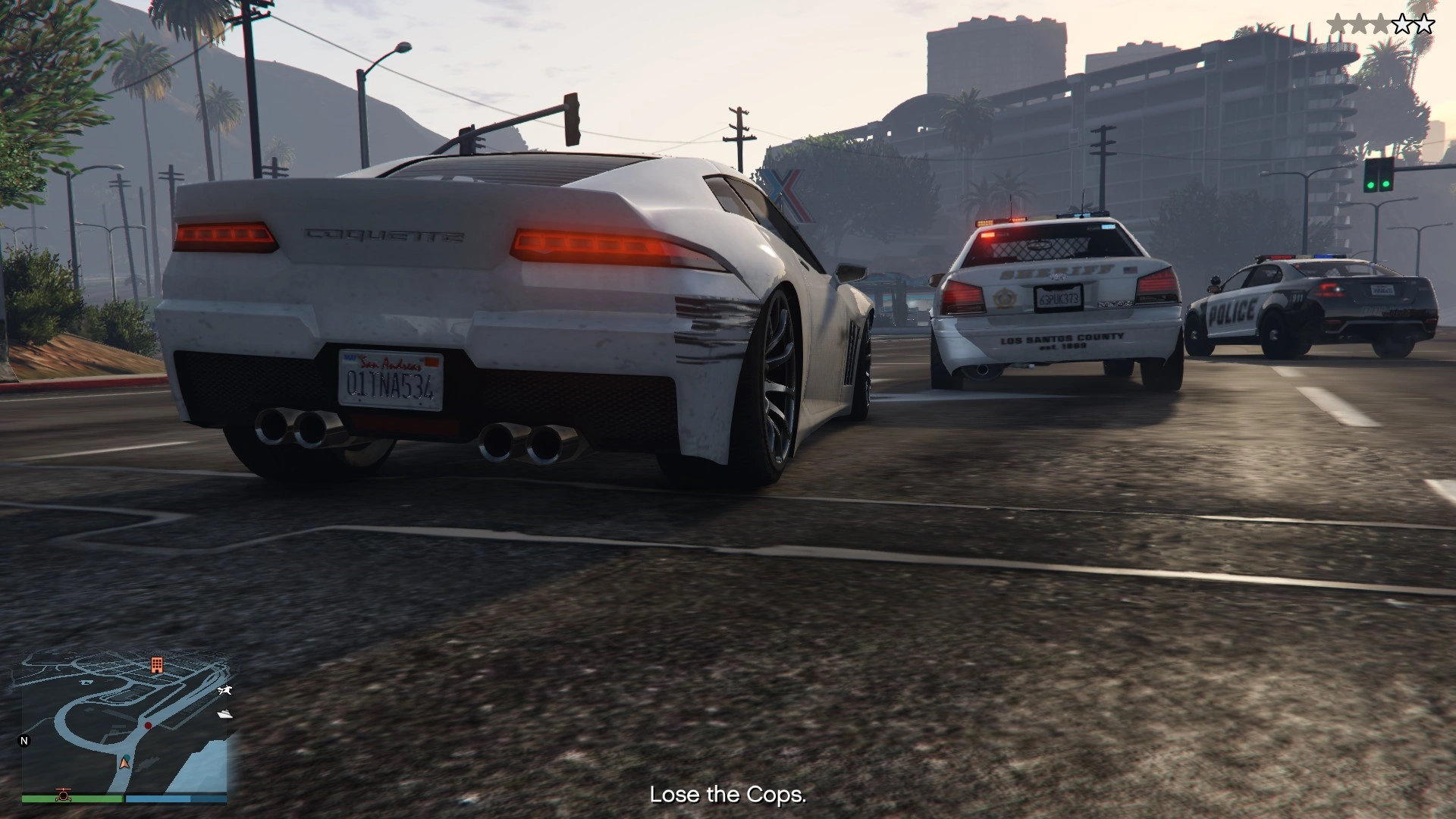 After leaving the clothing store with the outfits, the player must lose the two-star wanted level (Jamal sends a message saying he forgot to mention he didn't pay in advance for the outfits) and deliver the outfits required for the robbery to the Salvage Yard.