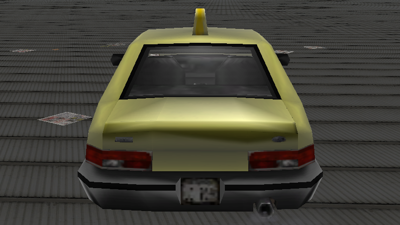 A Taxi without a roof sign in Grand Theft Auto III.