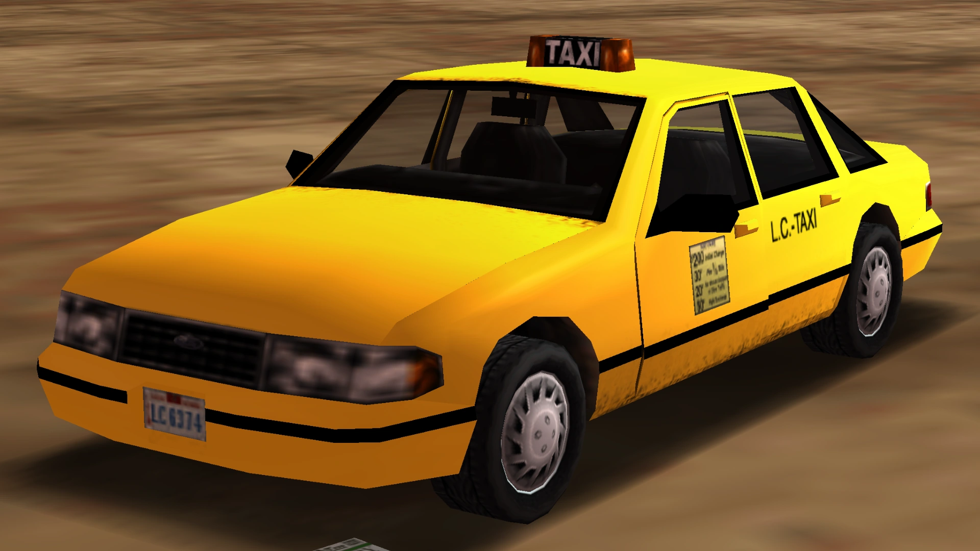 The Taxi resembles various 1980s-1990s sedans across the 3D Universe, often accompanying the game's police car.