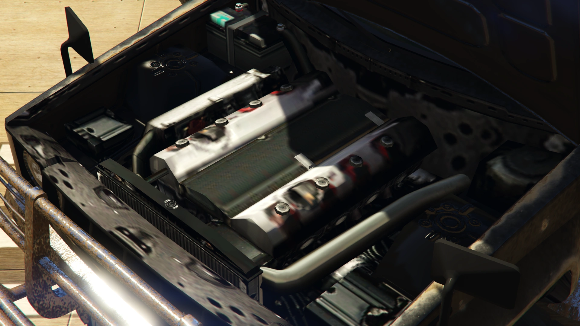 - Due to first-person camera POV issues, the player cannot switch to First-Person View while driving it on water. If they have FPV enabled beforehand, when the car enters water it would be disabled.