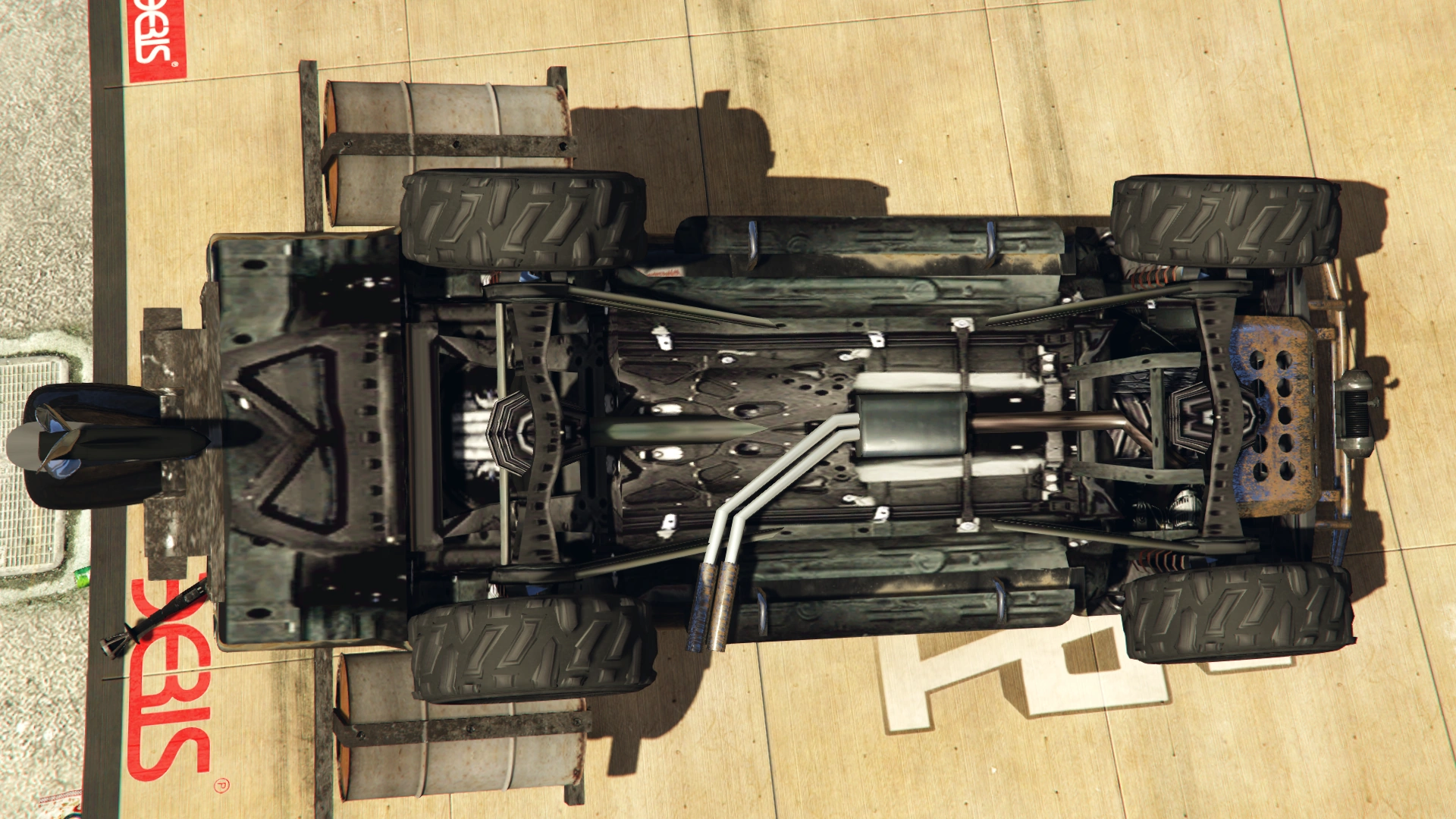 Like the Rusty Rebel and the Technical, the Technical Aqua is painted with a single primary colour on the bodywork, which can be resprayed through any mod shop. It also uses eight spoke rims with high-profile off-road tyres, with a rusty appearance on the rims.