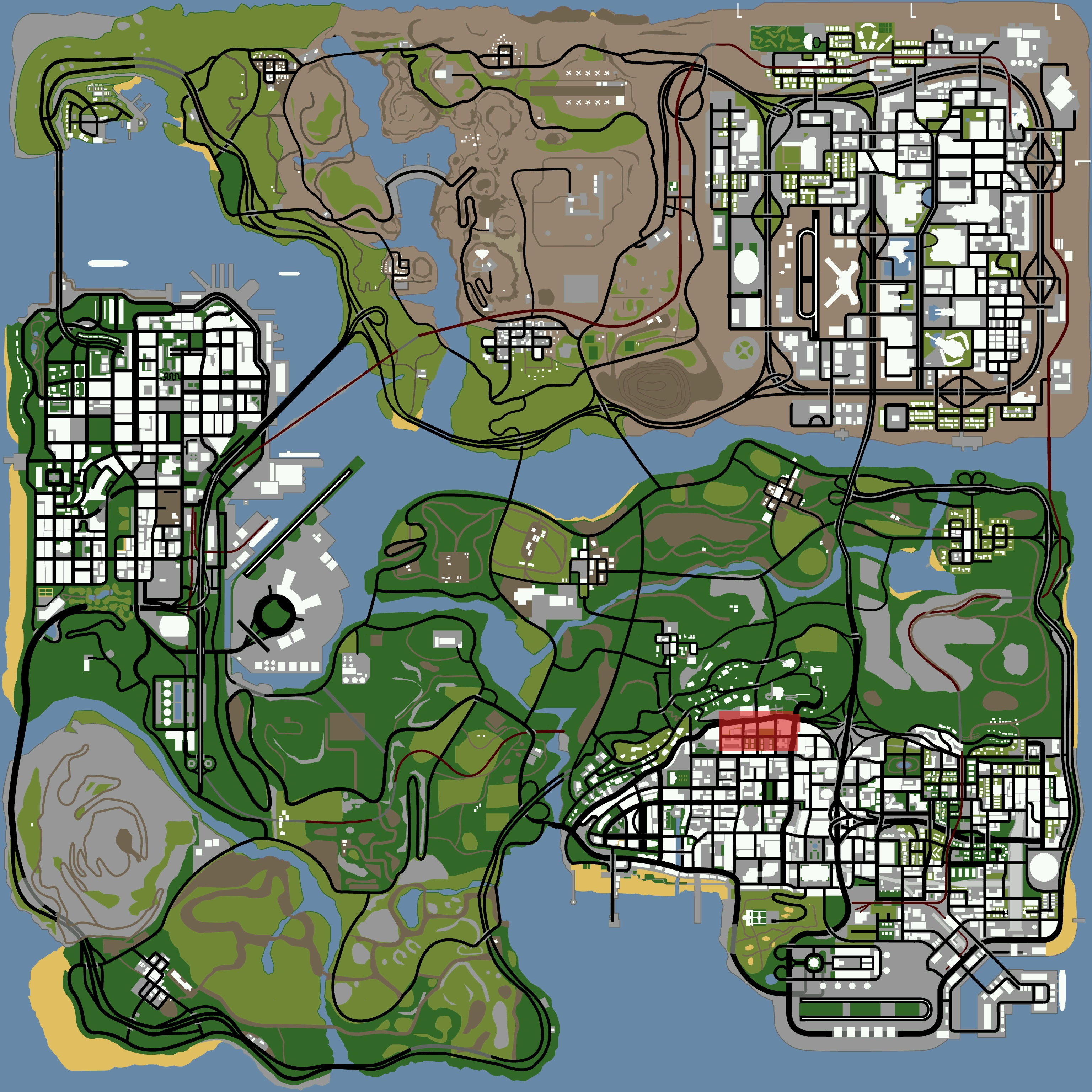 - Temple used to be called Sunrise and this still appears on the official San Andreas game website map [3].