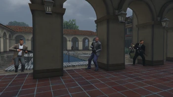 The Professionals also seem to be providing courier and bodyguard services for a variety of valuable employers, thus making them potential competitors of Merryweather Security Consulting. Gerald describes them as "professional-type dudes" in text messages. Lester, in one text message debriefing a mission, describes them as an "ex-military unit." Judging from dialogue during shootouts, they are apparently ex-United States Marines, sometimes shouting "I'm a fucking marine!", or "Semper fi!", the motto of the Marine Corps, though this might be an oversight as well since they share their quotes with the military. This makes them even more similar to Merryweather, as Merryweather operatives are former servicemen as well. The Professionals also serve as muggers when randomly selected by the game's code.