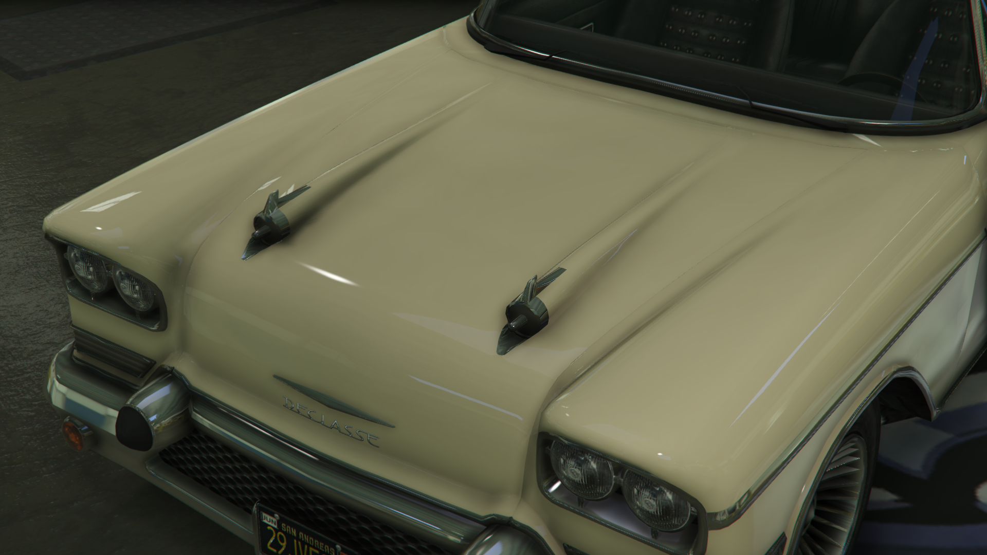 The car has its distinctive front end, chromed lines on the sides and a large trunk on the rear, along with grille details, circular mirrors and circular lights. The Tornado may spawn in a variety of primary body colors, with a secondary color applied on the interior (usually set to shades of white/grey). It uses small-size wheels with centercaps.