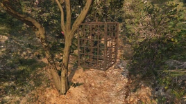 The cage is situated to the west of the Communications Tower, down the hill, hanging on a mangrove tree. The player can photograph the cage and send the picture to Pavel, who will comment on it. He claims to have spent a summer in a torture cage after trifling with the Welsh. The cage plays no role during the The Cayo Perico Heist finale.