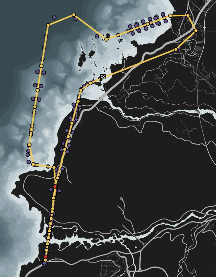 The race takes place in north west San Andreas, spanning between Tongva Hills and Paleto Bay. This race is primarily for motorcycles, although air vehicles and trucks are also used. The race is a 38 checkpoint long Lap race, default of 2 laps.