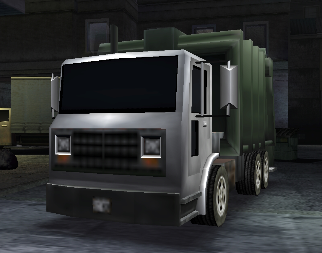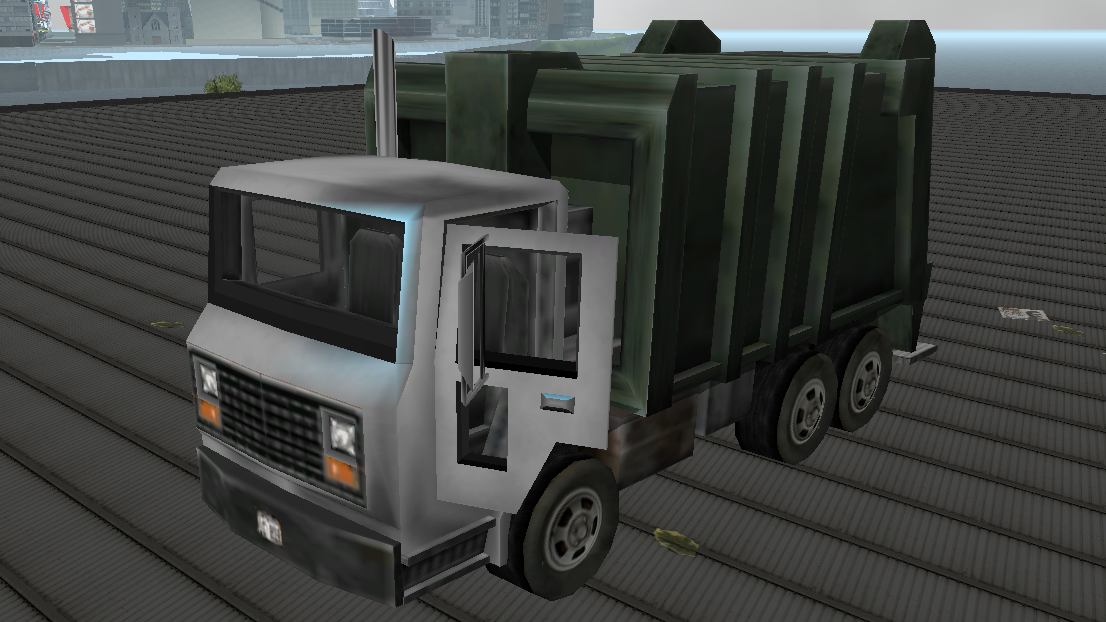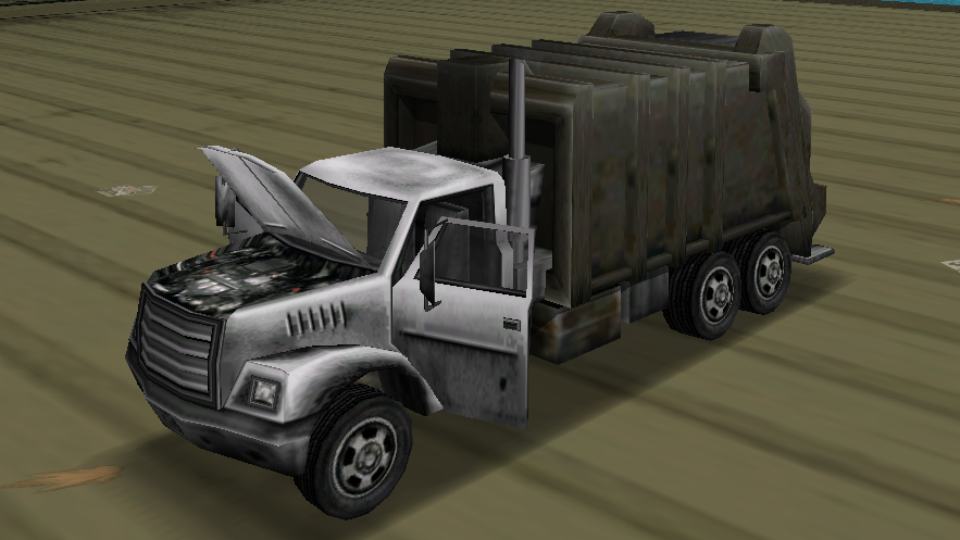 The "Garbage Truck", an earlier iteration of the Trashmaster in Grand Theft Auto III prior to the game's release.