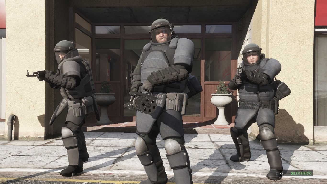 - Ironically, despite being the most violent of the trio and the most willing to take risks, Trevor fulfills the "less" dangerous role in 3 of the 4 heists in which he is present. In The Merryweather Heist (Freighter option) he stays behind with the mini-submarine while Michael and Franklin fight the soldiers. In Blitz Play he stays back and provides cover while again, Franklin and Michael fight the police officers and in The Big Score (obvious approach) he flies the chopper to transport the gold while Michael simulates a robbery in the Union Depository and Franklin actually steals the gold. This could be because of his potent distrust in Michael, fearing that he could be betrayed once more by his former partner if he didn't have eyes on him at all times. However, it could simply be due to him being the most-skilled pilot of the group, as he was military-trained.