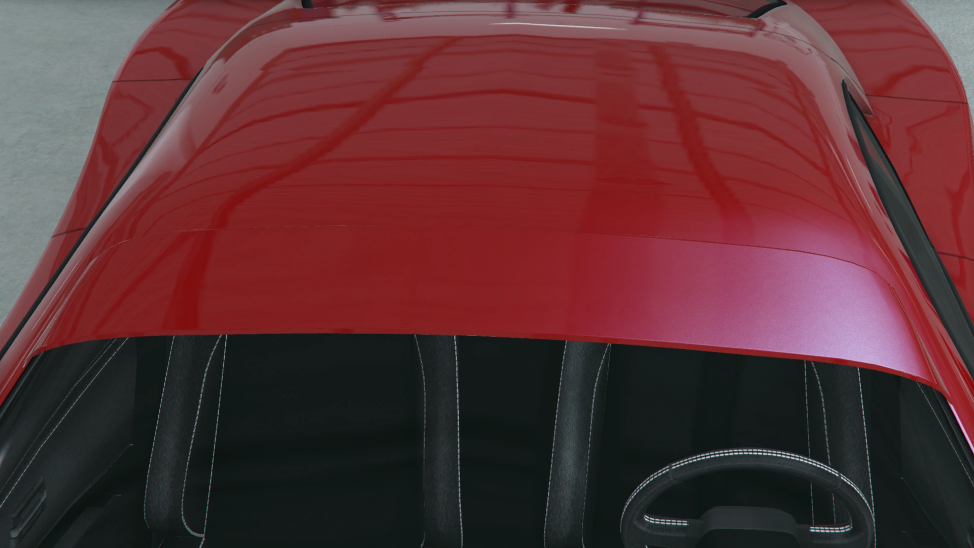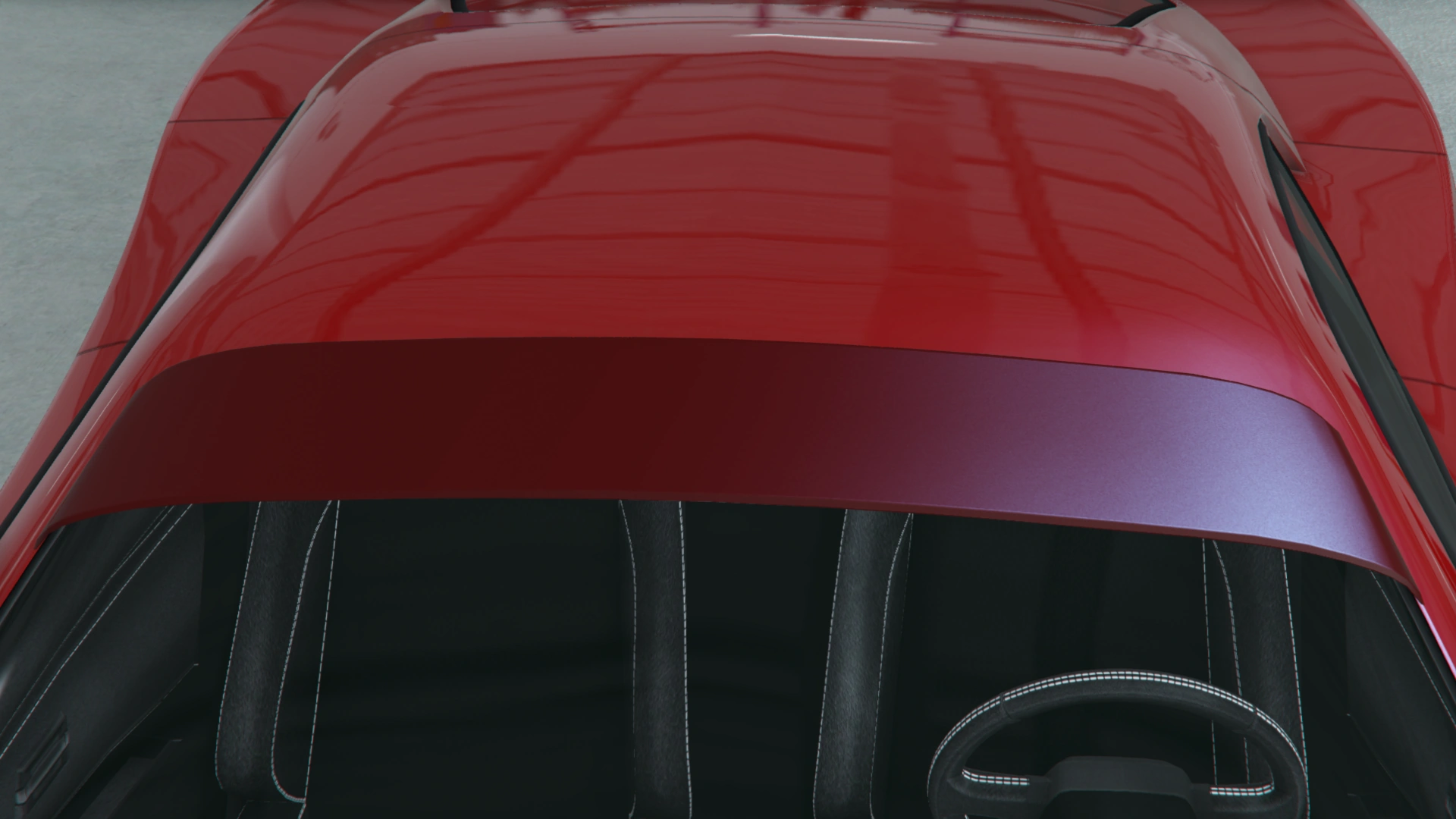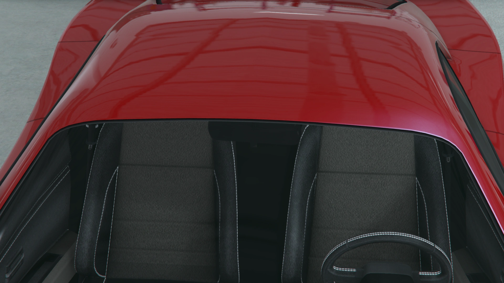 The primary colour of the car is applied on the bodywork, while the secondary colour is applied on the mirror wings. A trim colour is also available for the interior, painting the dashboard and the doorcards. It uses a set of wheels identical to the "Five Star" rims available in Los Santos Customs, albeit using more bolt details on the surrounding.