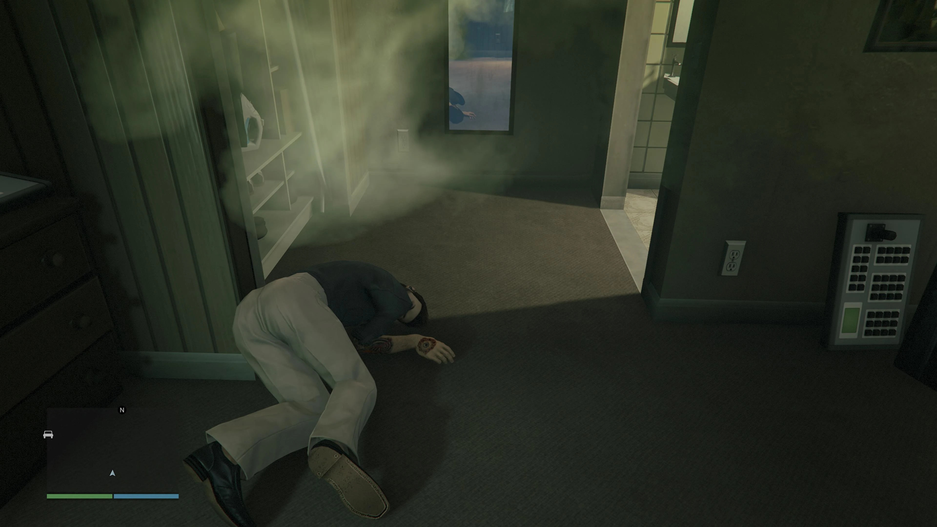 Once both drones have been hacked, ULP manages to pin down the base of operation at either the Bilingsgate Motel, the Pink Cage Motel, or the Perrera Beach Motel. The player must go to the motel and break into the room. However, nobody is found inside, ULP therefore asks the player to give him access to the computer controlling the drones in hopes of finding intel. As ULP goes over the data, he realizes that it is a sting set up by the FIB. Before the player can escape the room, it is flooded by an anesthesic gas which knocks them out.