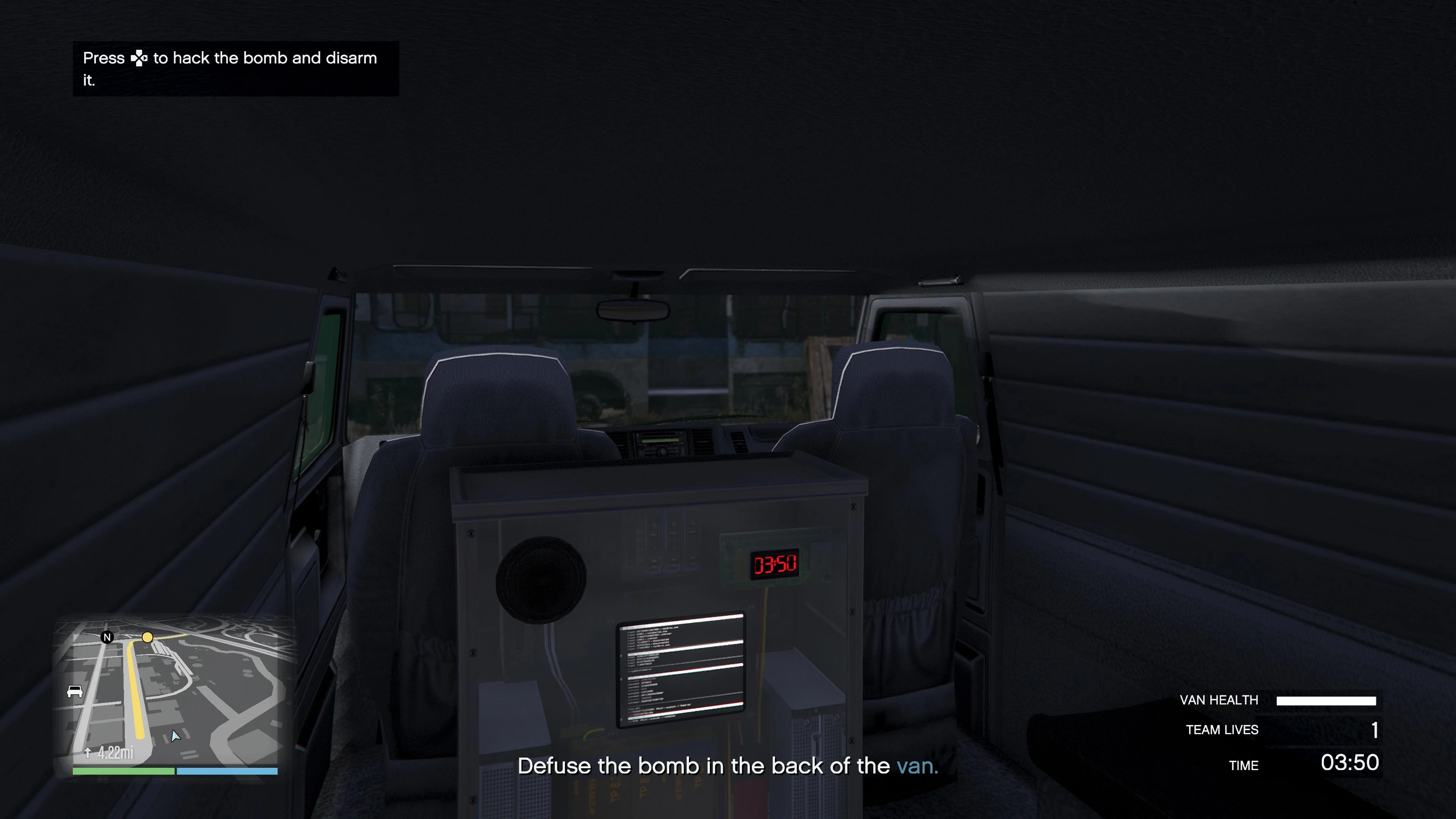 - Defuse the bomb in the back of the van.