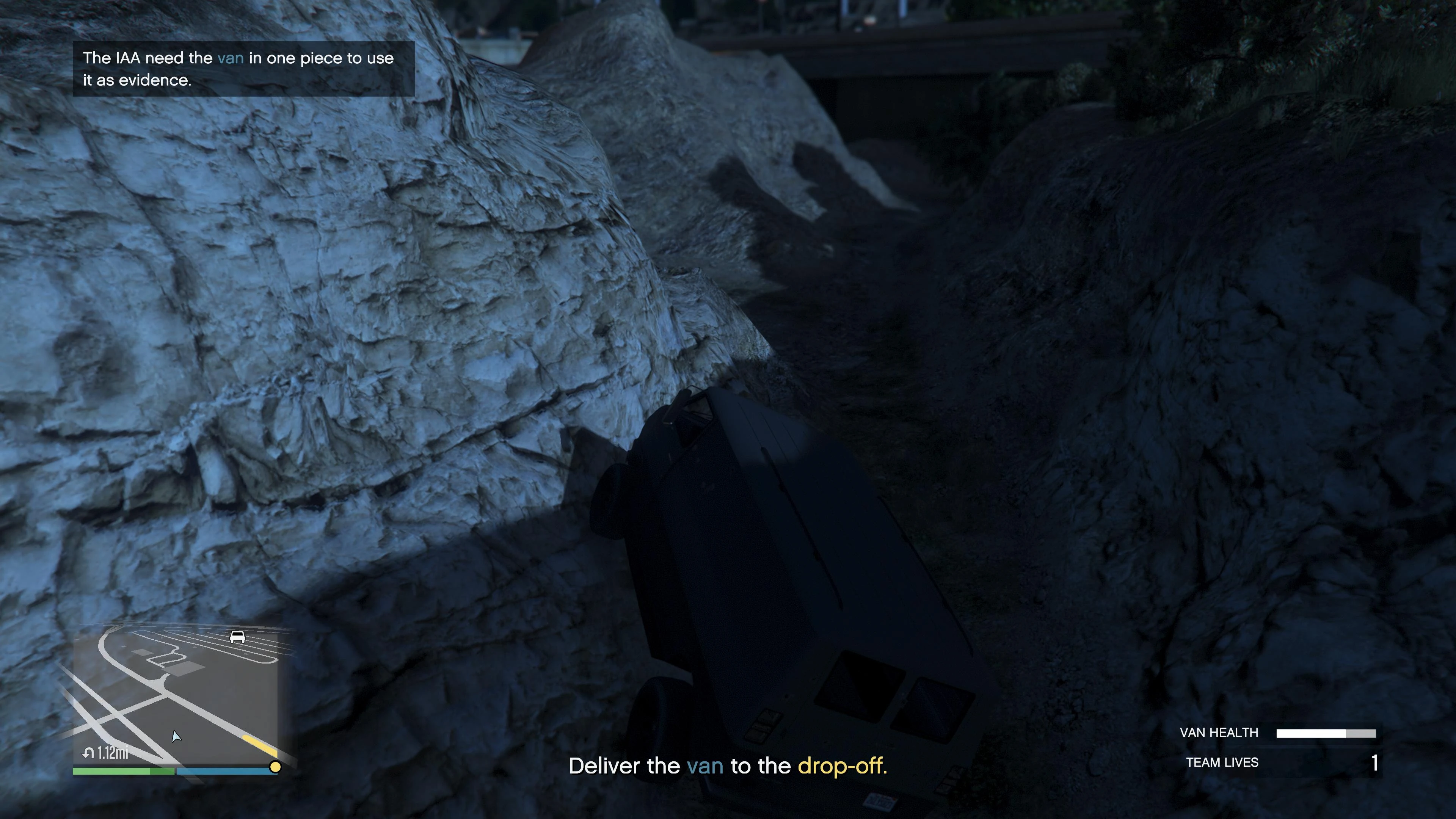 - Driving the van to the IAA headquarters will trigger an angry response from ULP who will tell the player to take the van to the drop-off.
