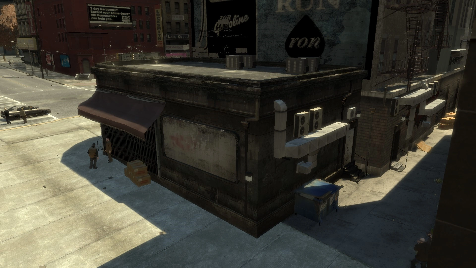 The first shop is located on the corner of Dillon Street and Montauk Avenue. in Downtown Broker in an unknown dilapidated building, and first appeared in the mission Do You Have Protection?, in which Dimitri directed Niko to purchase a Micro-SMG from the shop. The entrance is down an alleyway. |