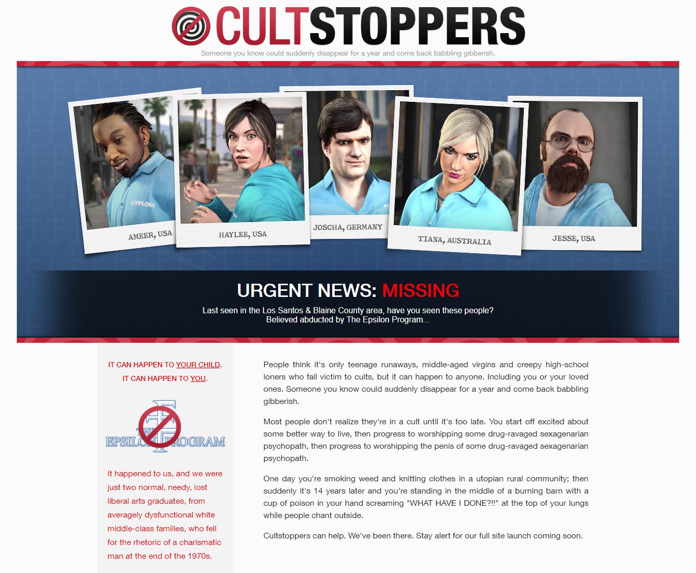 Promotional website for the Cultstoppers group in Grand Theft Auto V.