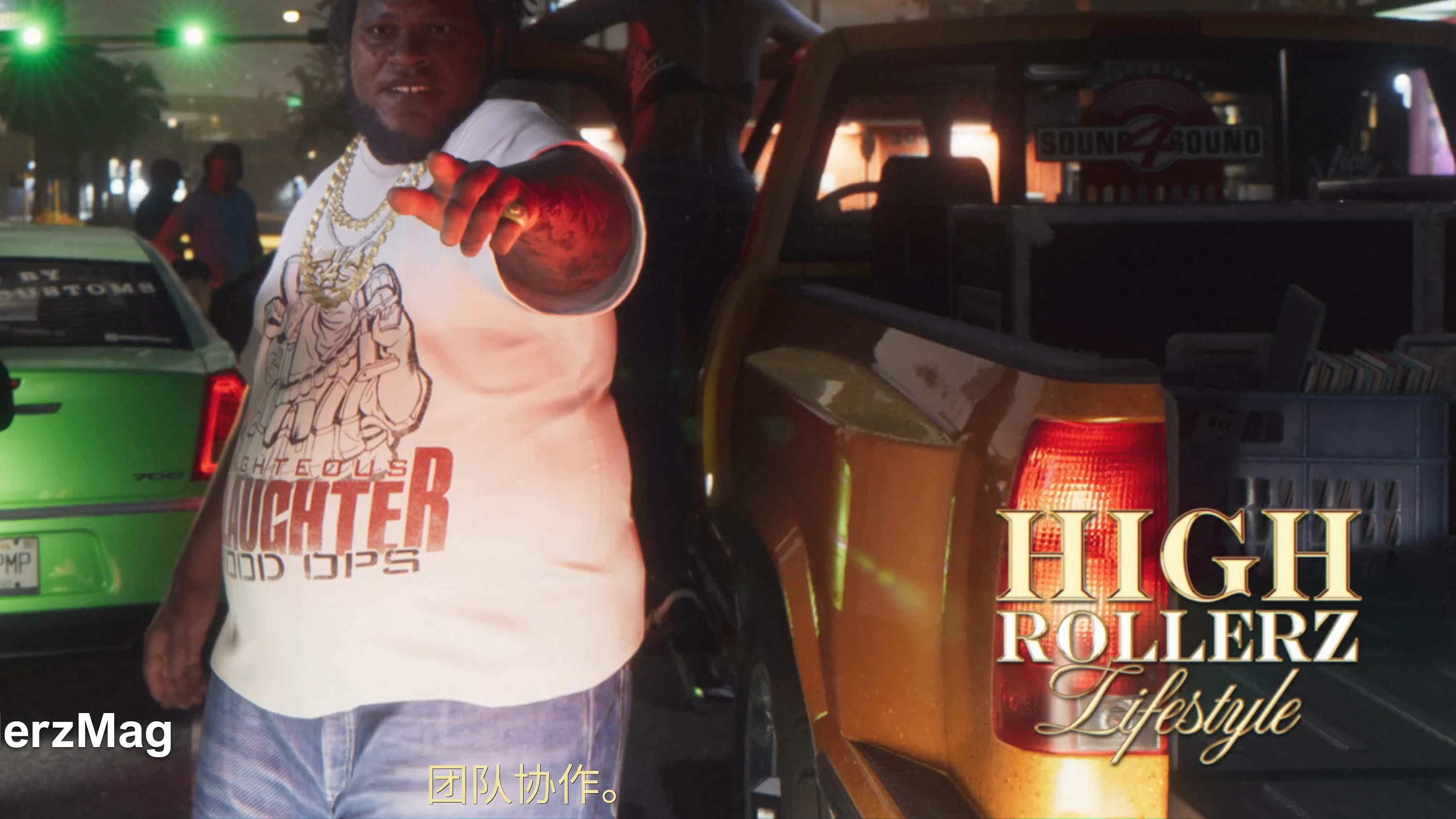 A red Bravado badge that can be briefly seen on the truck's steering wheel (0:52).
