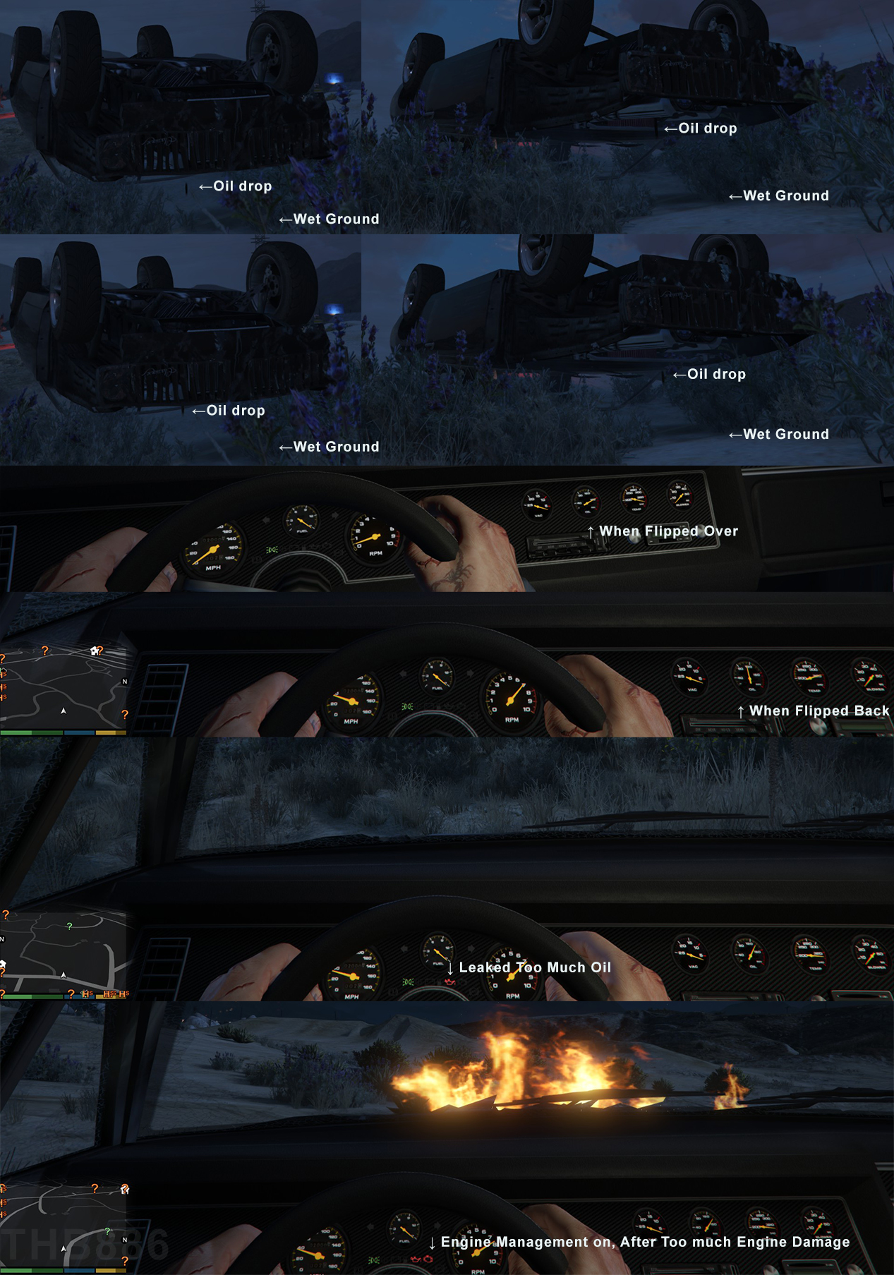 - Low Oil Warning Light - Lights up when a high amount of oil is leaking from the car.