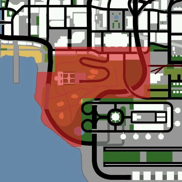The most prominent feature of the area is Verdant Bluffs itself, a large outcropping of rock. With over 2,000 acres of natural terrain, it is the largest municipal park and urban wilderness area in all of San Andreas.[1] Even with Ballas occupying Verona Beach and Aztecas controlling nearby El Corona and Little Mexico, little gang activity happens in Verdant Bluffs except occasional street races. The building at the top of the hill is the historic Los Santos Observatory based on the Griffith Observatory. The location and overall character appear to be based on mountain ranges of Baldwin Hills and Palos Verdes located at western parts of Los Angeles with the name being in common with Palos Verdes. The Santa Maria Freeway Extension runs through a tunnel underneath the western hillside of the bluff for a short distance. The district includes a residential and commercial area in the northeast, south of Commerce and Pershing Square.