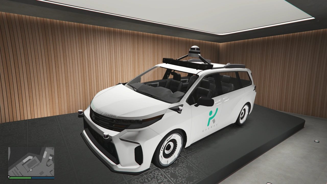 The KnoWay variant of the Karin Vivanite is a five-door robotaxi minivan appearing in Grand Theft Auto Online as part of the A Safehouse in the Hills update.
