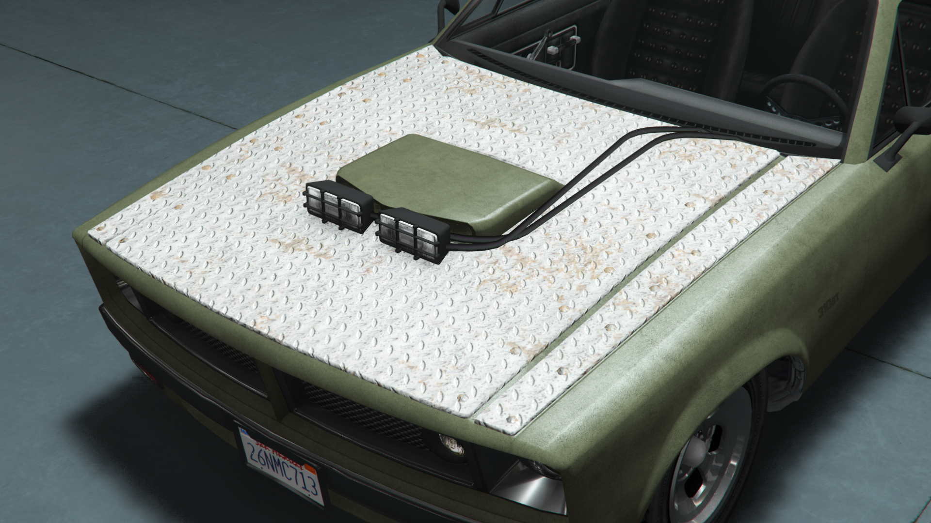 The armor upgrades add armor plated panels and bullbars to the vehicle, although the occupants are still exposed to gunfire and the car can still explode with a single explosive. However, it can withstand other vehicles exploding next to it when shot by the minigun, giving the occupants some time to leave the vehicle before it explodes.